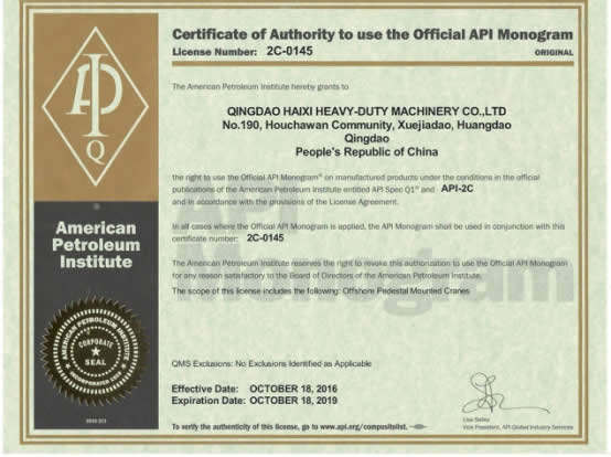 千錘百煉出精品。作為專業(yè)的海工平臺集成建造商,此次我司海上基座式起重機(jī)API-2C產(chǎn)品許可證書的成功取得,不僅是對公司質(zhì)量管理體系的高度肯定,也是公司管理水平穩(wěn)步提升的有效證明,為海西重機(jī)積極響應(yīng)國家“一帶一路”建設(shè),加快實(shí)施“走出去”戰(zhàn)略,增強(qiáng)市場競爭力提供了有利條件。