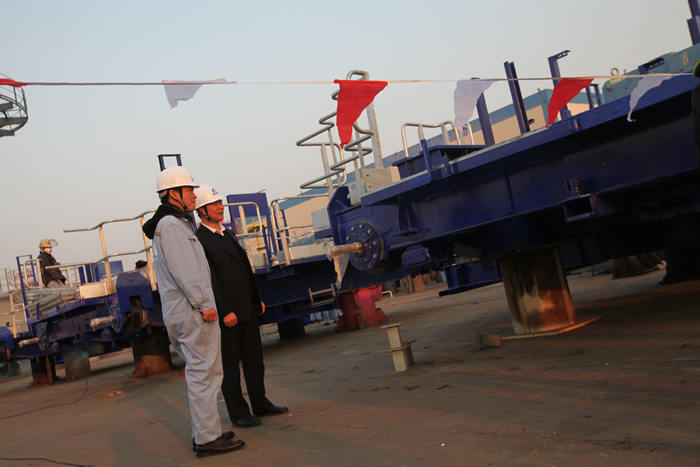公司董事長(zhǎng)鄧振山對(duì)盧克雄一行表示歡迎,詳細(xì)介紹了我司近年來集裝箱設(shè)備生產(chǎn)情況和公司未來發(fā)展規(guī)劃,并陪同考察團(tuán)參觀了公司現(xiàn)場(chǎng)生產(chǎn)基地,雙方就集裝箱設(shè)備的關(guān)鍵技術(shù)參數(shù)、設(shè)計(jì)細(xì)節(jié)、質(zhì)量檢驗(yàn)、售后服務(wù)等方面進(jìn)行了深入地探討和交流。