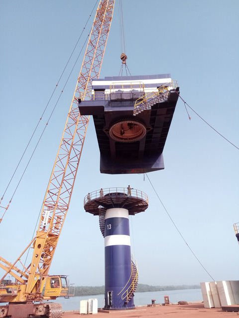 業(yè)主方急于生產(chǎn),為了滿足客戶需求,打好公司“一帶一路”非洲這一仗,項目組和施工隊一直在跟時間賽跑,時間不夠就一起加班;人手不夠,項目經(jīng)理帶領(lǐng)質(zhì)檢及工藝人員幫忙,擰螺栓、掄大錘、拉鋼絲繩,時間上能搶一點是一點;遇到問題,解決問題,大家群策群力,方法總比困難多。就這樣,我們使前2臺的安裝計劃時間一再壓縮,從最初的50天壓縮到40天,再到最后的35天交付業(yè)主投產(chǎn)。我們的努力獲得了客戶認(rèn)同,作為項目合作方的煙臺港技術(shù)處曲處長不禁贊嘆道:“你們詮釋了中國速度!”
