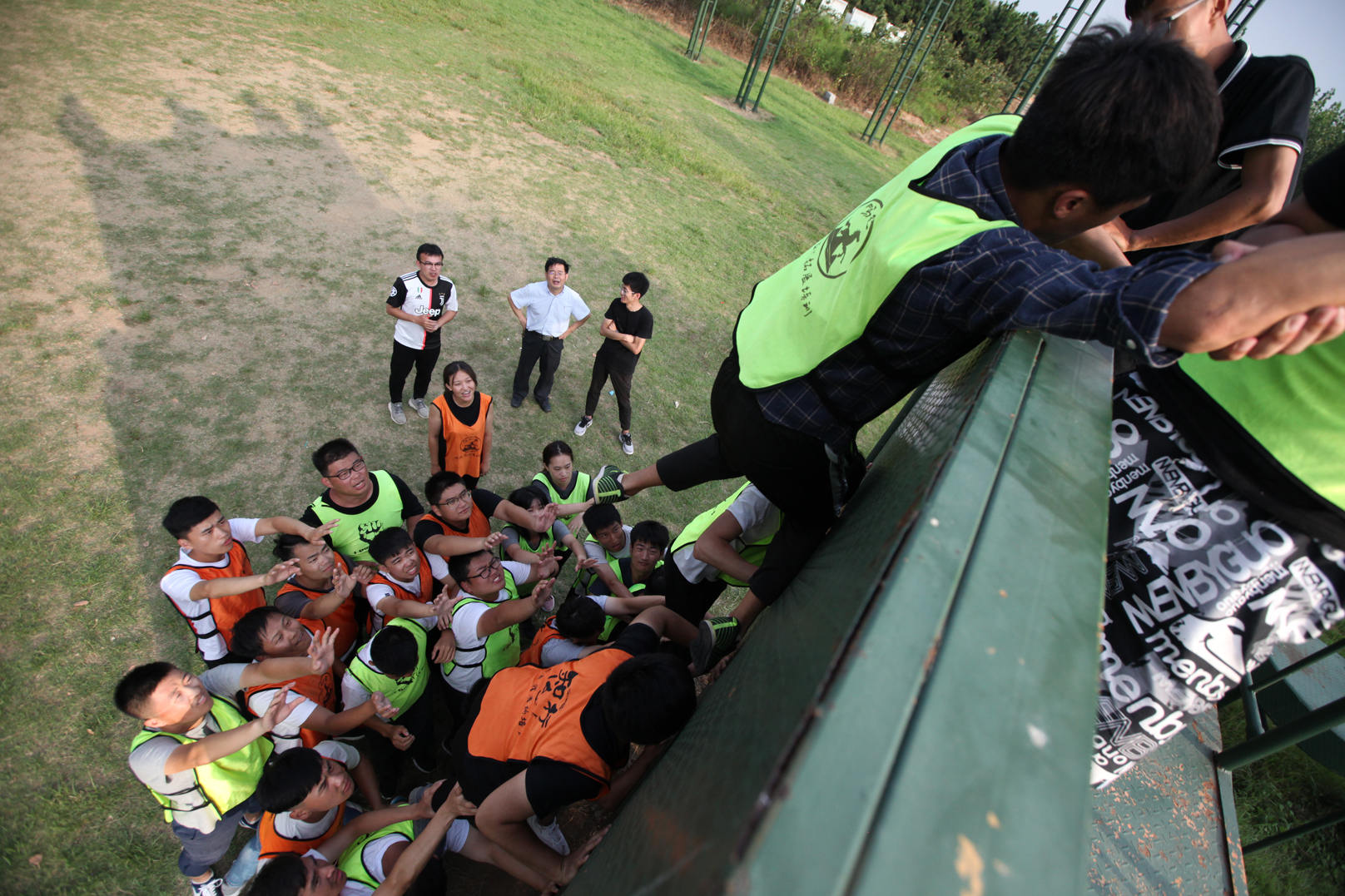 畢業(yè)墻項目是最難的挑戰(zhàn),隊員們需要在不借助外部構造的條件下全部爬到4.2米的高墻上,時間只有七分鐘。通過搭建“人梯”,隊員們一個個送了上去。隊員們沒有經過專業(yè)訓練,面對4.2米的高墻,墻下也沒有助力,最后一名隊員想要上去簡直太難了。墻上的隊員利用倒掛金鉤拉住墻下的隊員,大家都爆發(fā)了前所未有的力量,最后成功了,全體成員登上高墻,完成任務。宣布成功的這一刻,大家空前的團結,空前的感動,不拋棄,不放棄,才是一個真正的團隊。