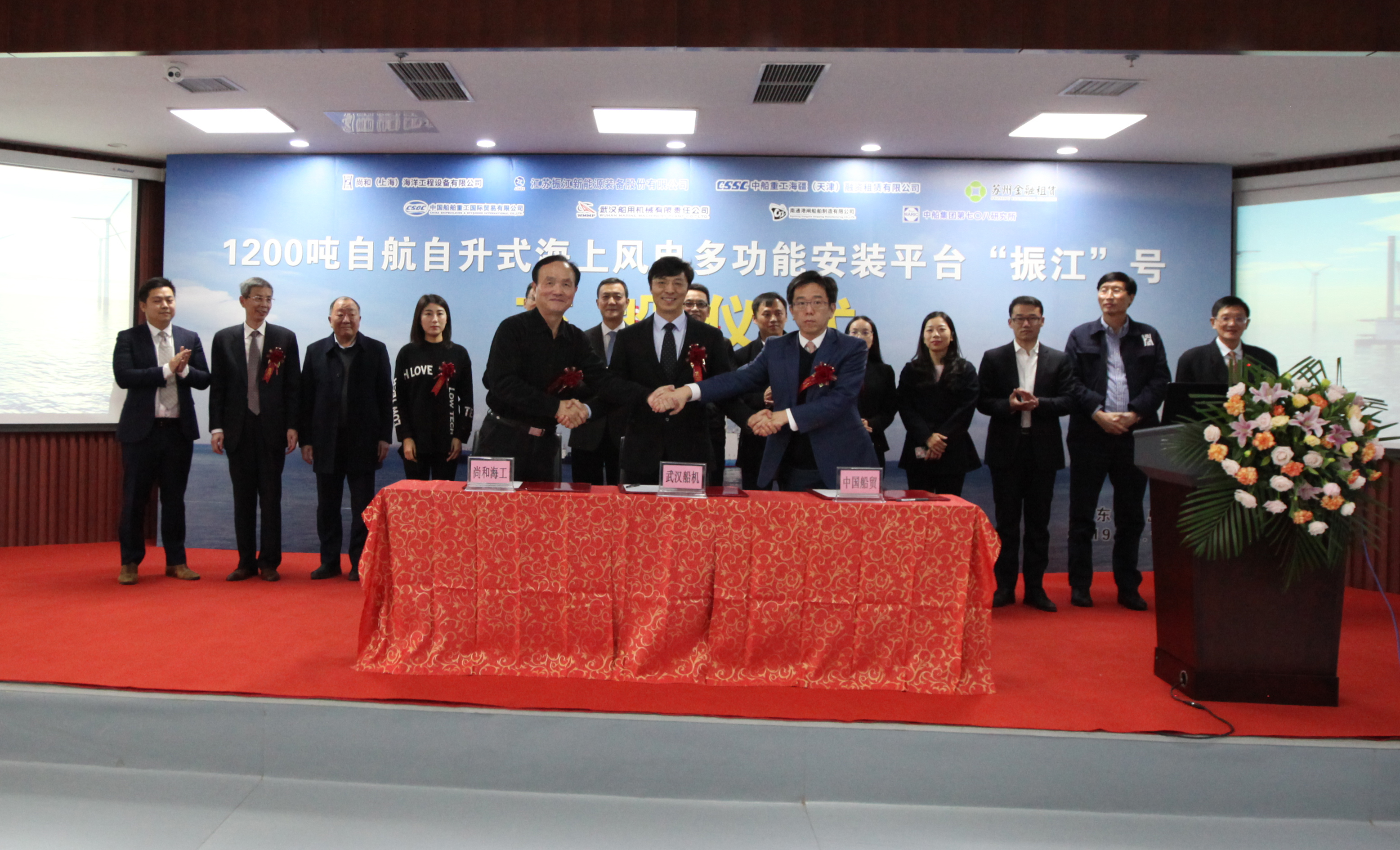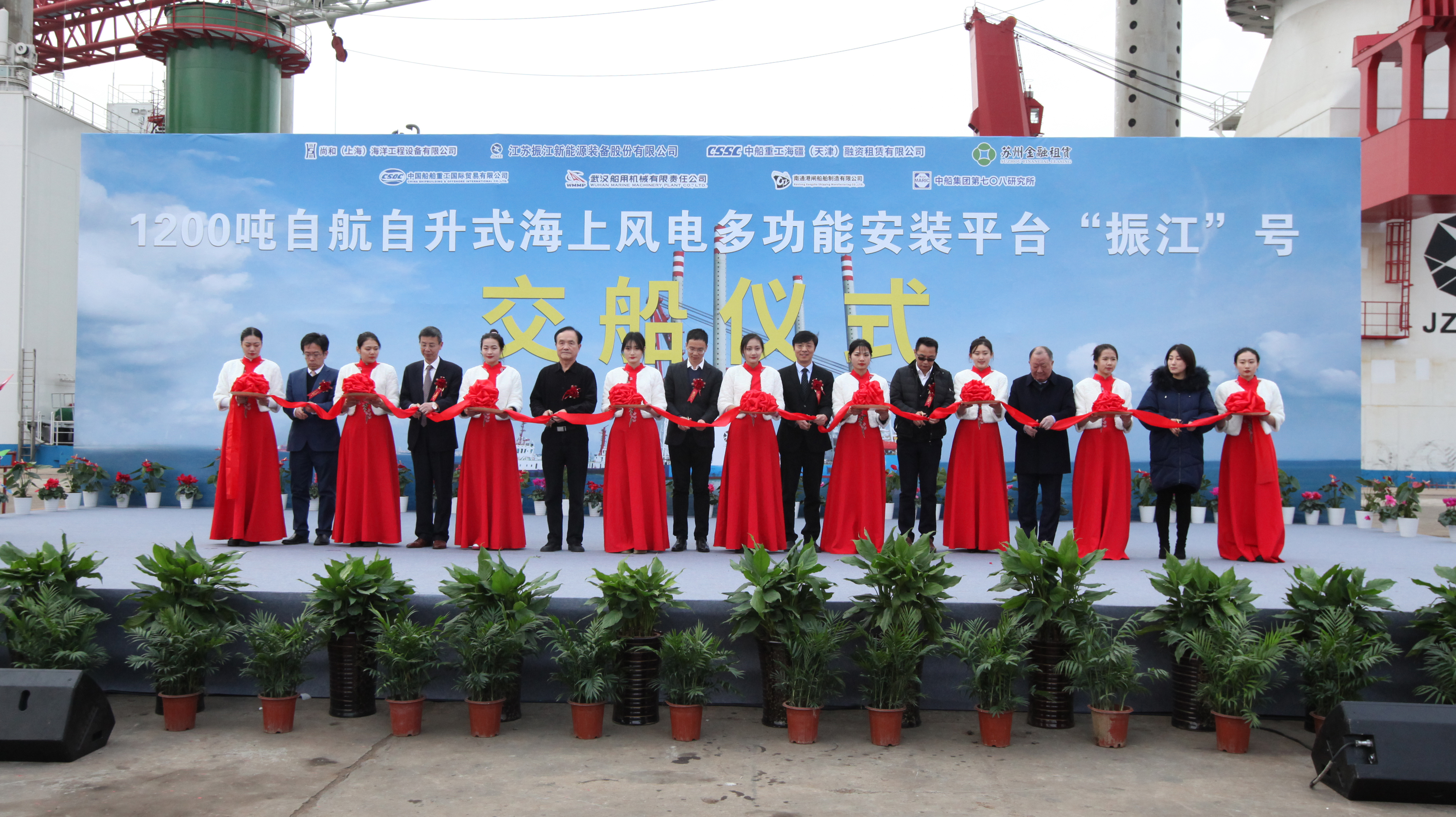 12月13日下午,國內(nèi)首座1200噸自航自升式風(fēng)電安裝平臺——“振江”號交付儀式在武漢船機海西重機隆重舉行。尚和(上海)海洋工程裝備有限公司、江蘇振江新能源裝備股份有限公司、中信銀行、中國船舶及海洋工程設(shè)計研究院、中國船級社等單位領(lǐng)導(dǎo)和項目相關(guān)人員共同見證了這一歷史性時刻。