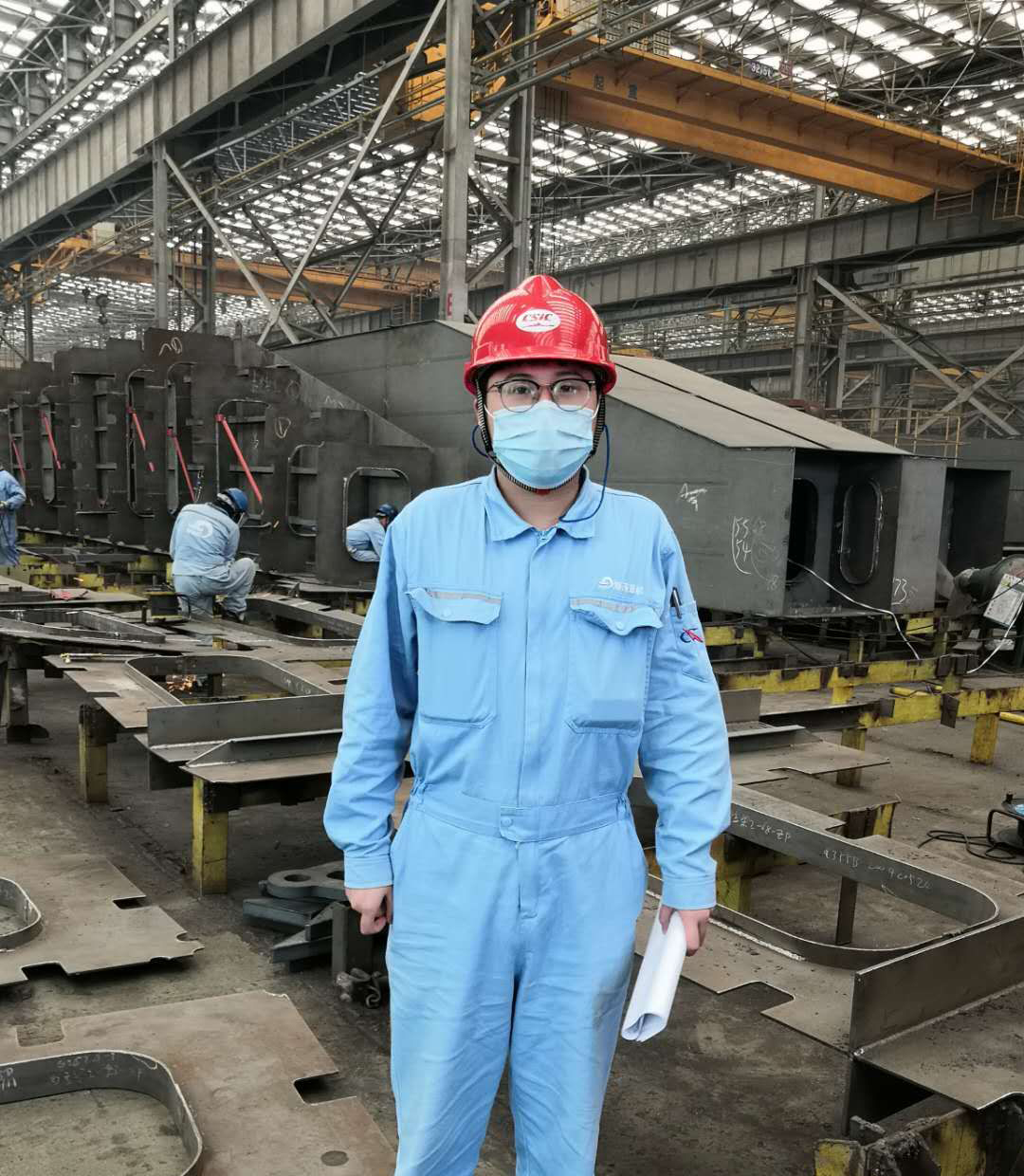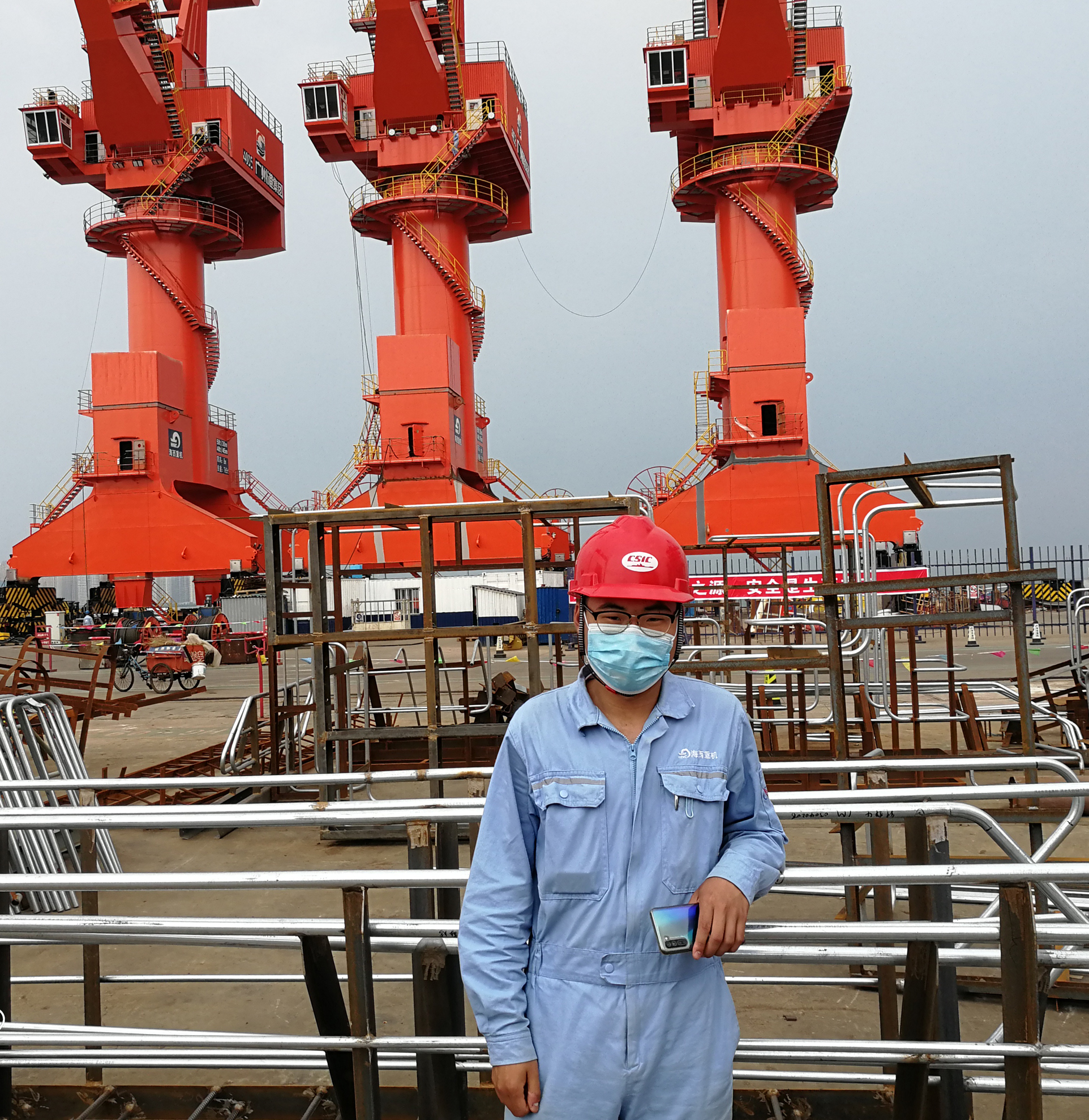 踏實的腳步不代表畏葸不前。他是一個憨厚可信的同事,總能讓你感覺他在時刻進步。G259支腿結(jié)構(gòu)件的翻身工作,從開始的吊裝方案探討、吊車計劃的安排、工作分配、人員準(zhǔn)備、吊索具狀態(tài)確認(rèn),這些可能干擾正常項目進度的前期準(zhǔn)備工作中,總能看見他拿著本子在記錄著什么。吊裝時吊車的位置與兩臺吊車之間的操作配合產(chǎn)生的一點不協(xié)調(diào),他也要與現(xiàn)場施工人員商議確認(rèn),雖然耽誤了十幾分鐘,但安全地完成工作任務(wù);報檢過程需要懂得經(jīng)緯儀操作,他便幾個中午纏著帶班班長,一板一眼的學(xué)習(xí),現(xiàn)在的他儼然是一個“激光”老手,令人欽佩。