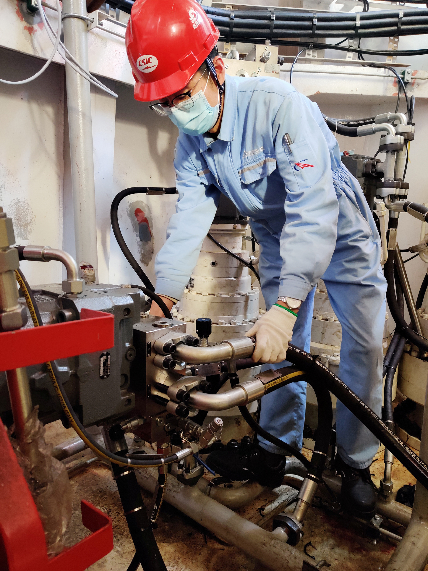 從管路預制,泵壓試驗,酸洗串油,到管路復裝,張偉康總是在馮鵬超的傳幫帶下,分工合作,恰似黃金拍檔。在海工設(shè)備后期液壓系統(tǒng)調(diào)試的半個月中,他們和總部工程師一起,每天主動加班調(diào)試到深夜。由于產(chǎn)生液壓系統(tǒng)故障的可能性因素較多,排查起來較為困難,面對調(diào)試中發(fā)生的諸多難題,他們迎難而上,敢于擔當,認真分析討論各種解決方案,并嚴格進行逐一排查,最終完美解決了故障。張偉康新人得力,敢于主動擔當,堅守液壓潤滑陣地,為保證整個項目按時交付爭分奪秒。