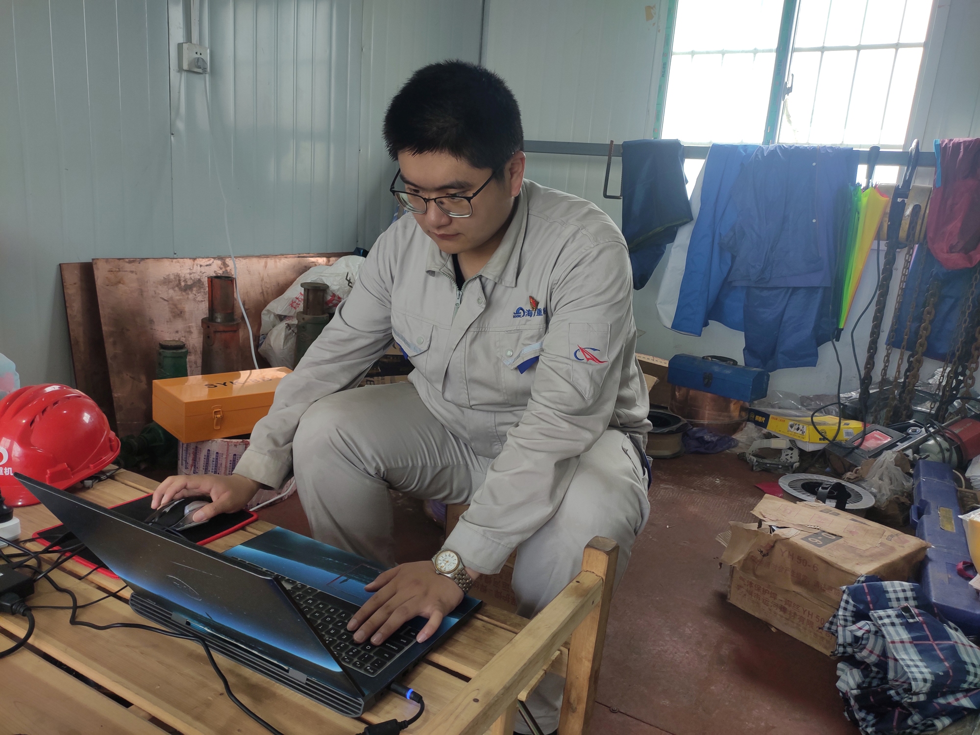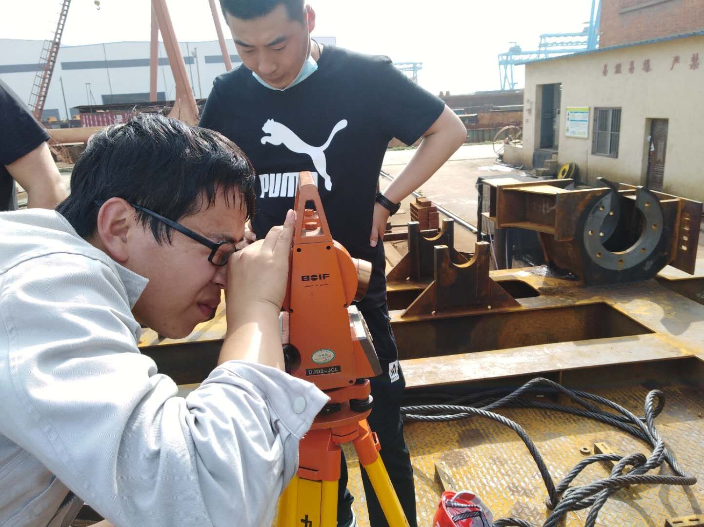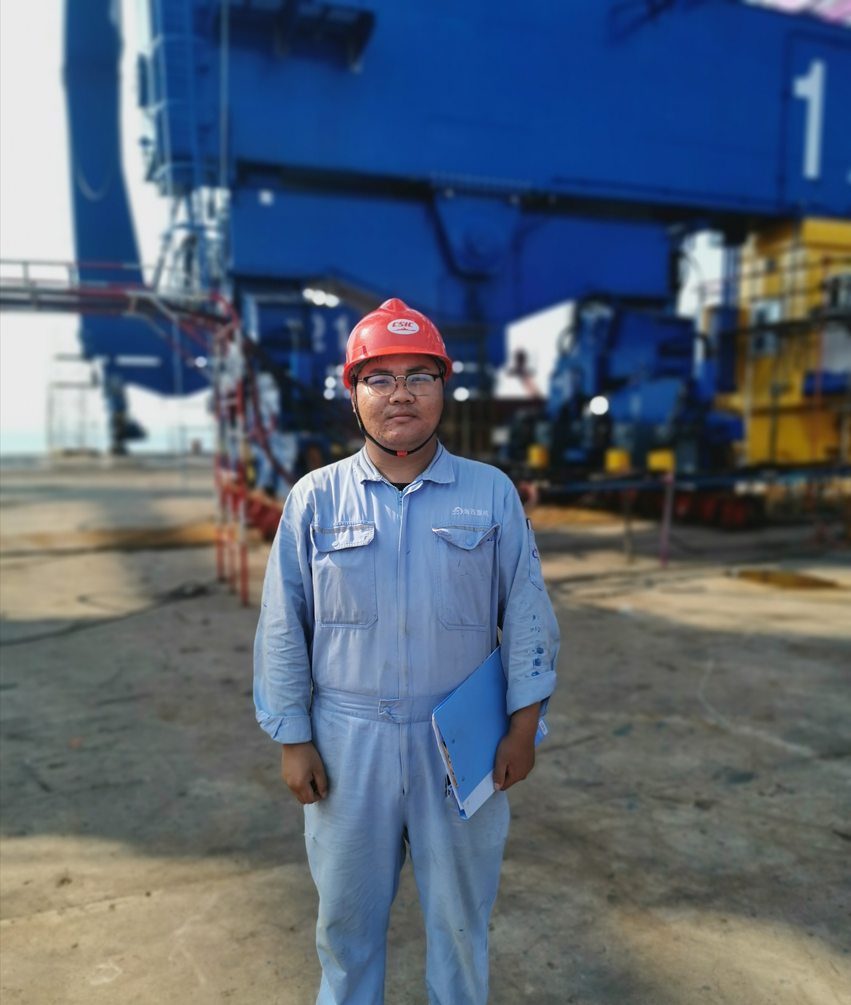 “我先后前往紅光碼頭總裝現(xiàn)場以及九橋鋼結(jié)構(gòu)制作現(xiàn)場,幾乎每天都有雨,現(xiàn)場施工壓力大,經(jīng)常要冒雨趕工,在雨中工作已經(jīng)成為常態(tài),哪怕渾身濕透也要繼續(xù)。通過與施工隊溝通,在師傅牟壽堂的指導下,清點現(xiàn)場物資,不斷解決現(xiàn)場技術(shù)問題,加深了對整機結(jié)構(gòu)和裝配的理解?,F(xiàn)場碼頭吊裝需要使用浮吊,浮吊方案的編制十分復雜,不僅僅要考慮吊高、幅度與載重,還要考慮水位、吊裝角度、臂架干涉等一系列的問題,為了把參數(shù)計算準確,經(jīng)常加班加點,還好努力就有收獲,現(xiàn)在對吊裝作業(yè)的理解更深了?!眲㈤F旗在感嘆自己的成長,感恩于他的付出,畢竟無論是小青年還是老青年,這片藍天是靠大家共同撐起的。