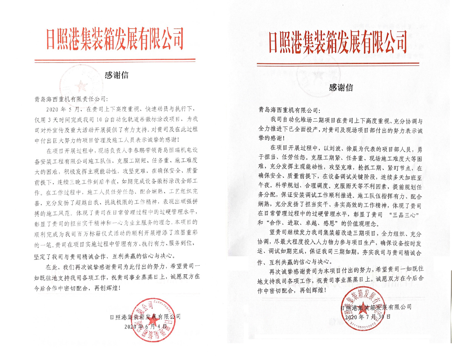 近日,中國(guó)船舶集團(tuán)旗下武漢船機(jī)海西重機(jī)公司收到兩封來自日照港集裝箱發(fā)展有限公司的感謝信,字里行間表達(dá)了對(duì)海西重機(jī)在用戶重要節(jié)點(diǎn)中勇于擔(dān)當(dāng)、積極配合、出色完成任務(wù)的表現(xiàn)和付出表示誠(chéng)摯的感謝,也充分說明了用戶對(duì)海西重機(jī)產(chǎn)品和服務(wù)的認(rèn)可。