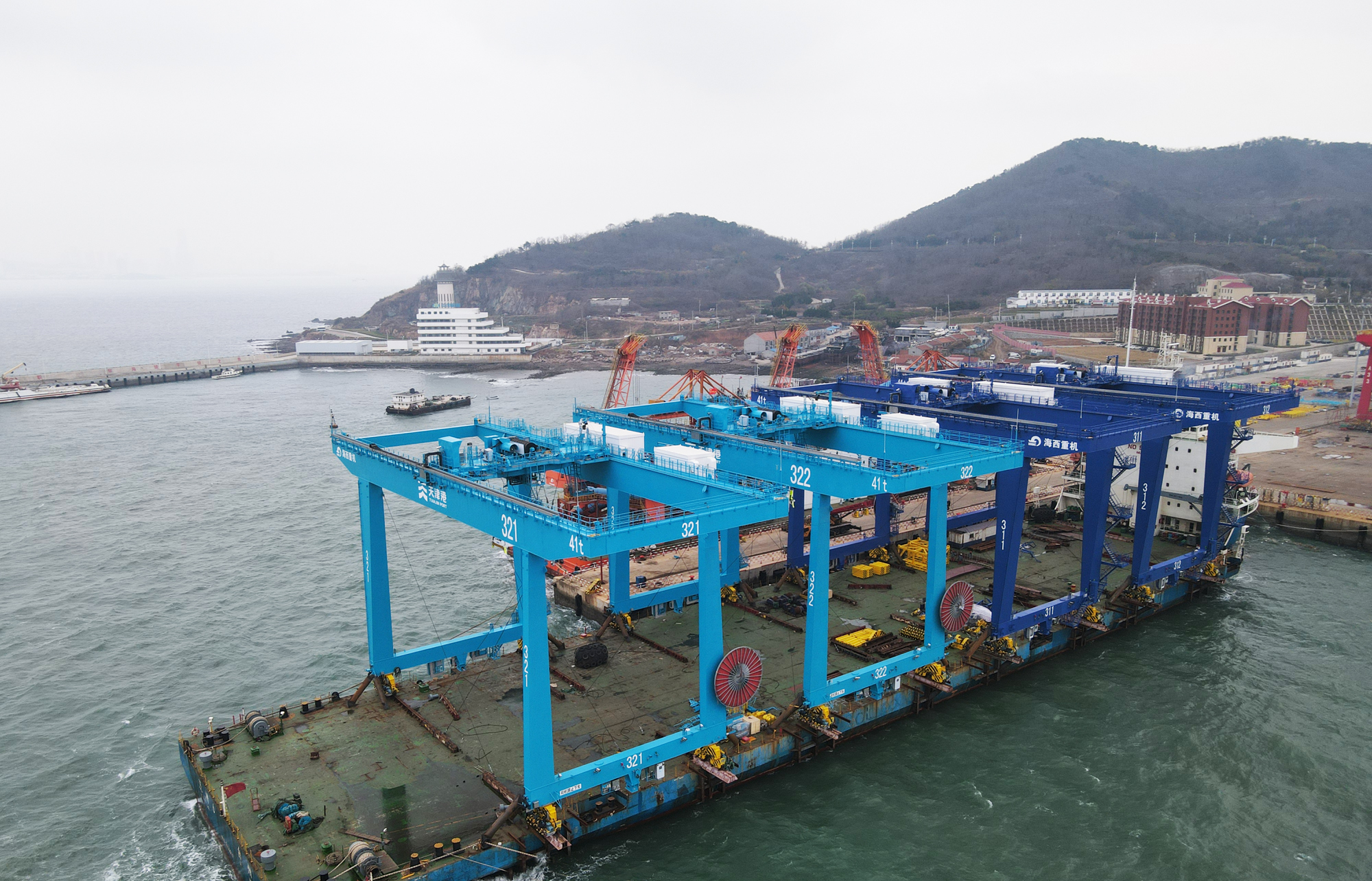11月19日,裝載著天津港北疆港區(qū)C段智能化集裝箱碼頭一期工程項(xiàng)目第一批4臺(tái)藍(lán)色自動(dòng)化軌道吊的運(yùn)輸船“泛洲6”順利從中國(guó)船舶集團(tuán)旗下武漢船機(jī)海西重機(jī)公司碼頭起航,發(fā)往天津港。