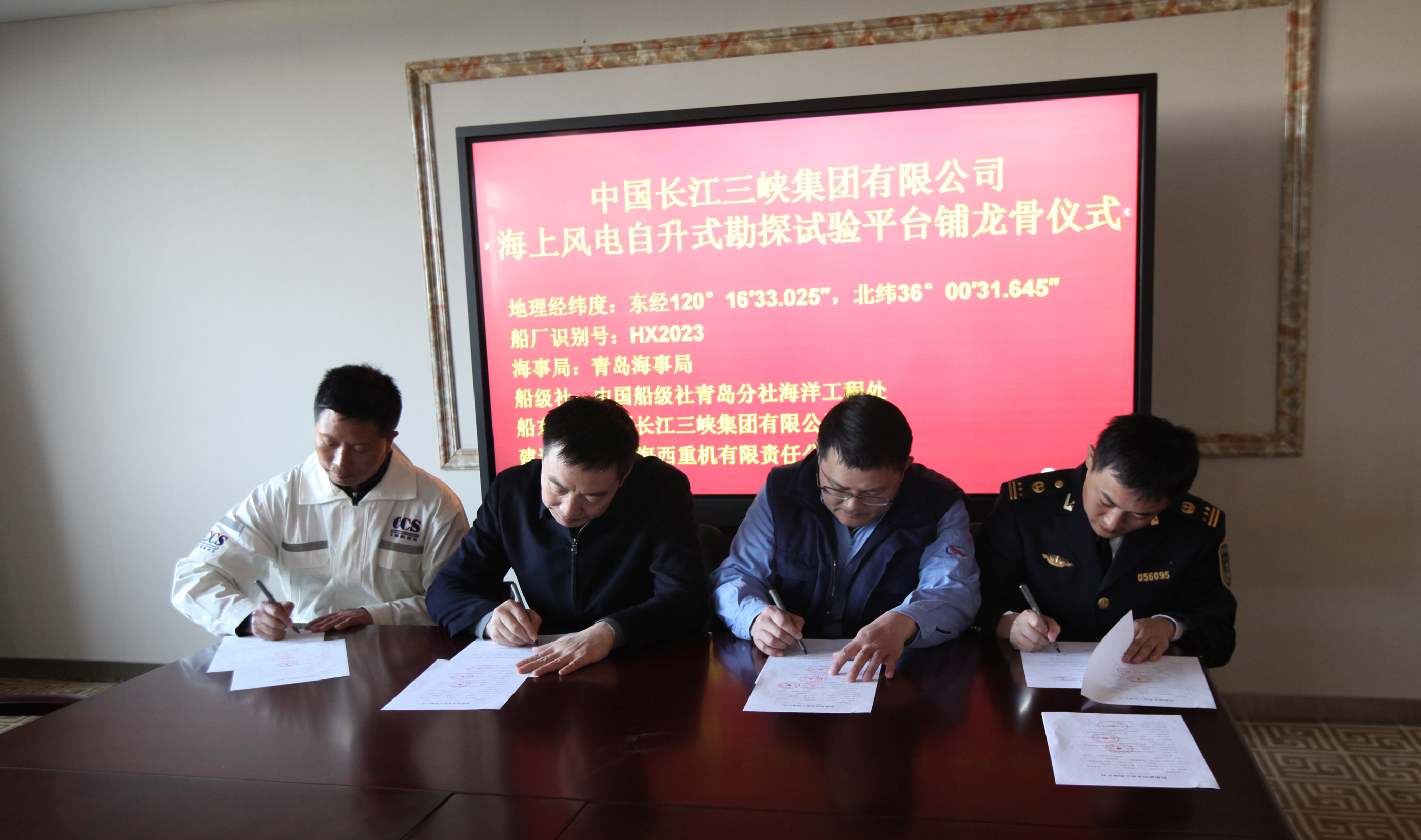 12月22日上午,在青島海事局、中國船級社青島分社、中國長江三峽集團有限公司、中國船舶集團旗下武漢船機海西重機各方代表共同見證下,“中國三峽101”海上風電自升式勘探試驗平臺順利完成鋪龍骨儀式,標志著該項目正式進入平臺搭載建造階段。