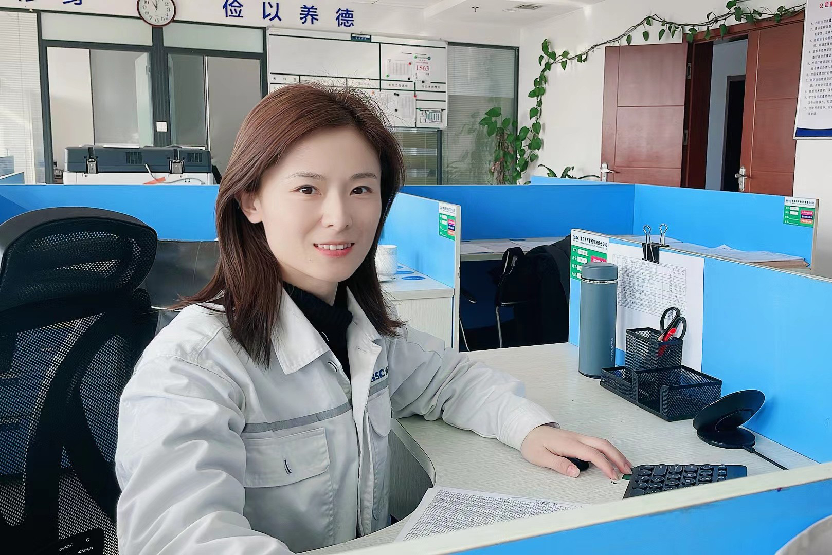 在物資保障部會議室的墻上,寫著這么三句話,“對待物資采購節(jié)點、質(zhì)量問題處理要有坐不住的責(zé)任感、慢不得的緊迫感、等不起的危機感”。黃茜,就是這樣一位有著坐不住的責(zé)任感的女子。她負(fù)責(zé)采購電機、制動器、聯(lián)軸器等主要配套件物資,這些物資在調(diào)試階段容易出現(xiàn)不同的問題。在問題處理中,無論多晚,不論節(jié)假日,她都會積極協(xié)調(diào)處理。只要現(xiàn)場有需求,第一時間聯(lián)系反饋。中秋、國慶聯(lián)系某項目電機振動問題,大年三十當(dāng)晚,協(xié)調(diào)解決某項目現(xiàn)場問題……。當(dāng)問到她,對于假期還要處理工作,是否感到不愉快時,她回答說,“只有一件事完完全全的結(jié)束了,這件事才能從我的心上落下,心的負(fù)荷能力有限,只有盡快完成每一件事,才能做到身心輕松,假期一定是要身心輕松才能愉快度過,如果有事未處理完,那么對于我來說,假期就打折扣了。所以我希望用我的能力盡快處理問題”。