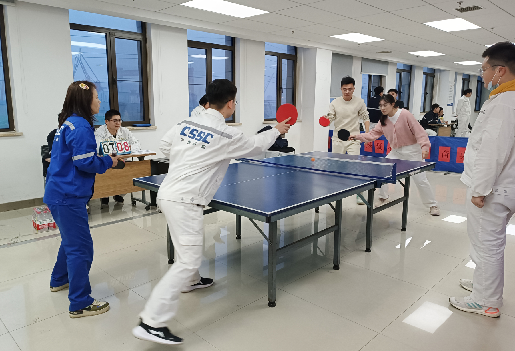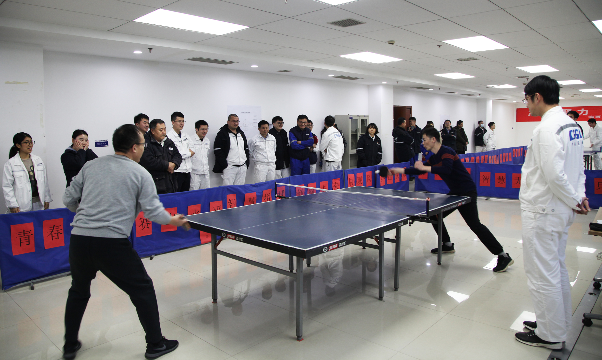 陽(yáng)春三月,疫去春來(lái),萬(wàn)物復(fù)蘇,備受期待的中國(guó)船舶集團(tuán)旗下武漢船機(jī)海西重機(jī)公司第五屆乒乓球團(tuán)體賽于2月28日揭開(kāi)序幕。比賽獲得了大家的積極響應(yīng),來(lái)自各黨支部及部門(mén)的8支代表隊(duì),50余名職工參加了此次比賽,歷經(jīng)3天激烈角逐,于3月2日?qǐng)A滿(mǎn)落幕。最終,項(xiàng)目管理黨支部隊(duì)勇奪桂冠,生產(chǎn)保障部隊(duì)、港機(jī)所隊(duì)分別獲得亞軍、季軍。公司黨委副書(shū)記、紀(jì)委書(shū)記、工會(huì)主席朱聲凱到比賽現(xiàn)場(chǎng)為選手們鼓勁加油,并為獲獎(jiǎng)人員頒獎(jiǎng)。