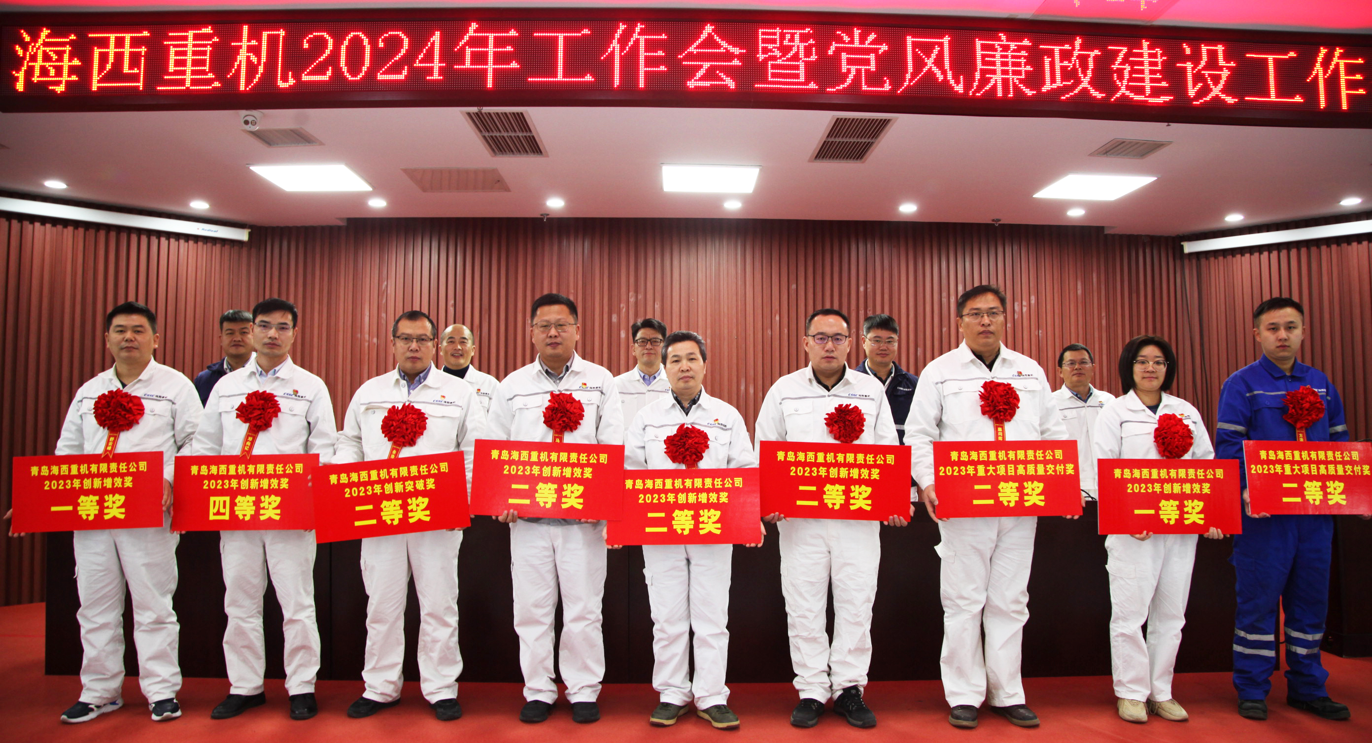 大會表彰了公司2023年度“四好”班子、優(yōu)秀管理者、2023年度重大項目高質(zhì)量交付獎、創(chuàng)新突破獎、創(chuàng)新增效獎,組織簽訂了2024年方針目標、2024年承包合同和黨風(fēng)廉政建設(shè)主體責(zé)任書。