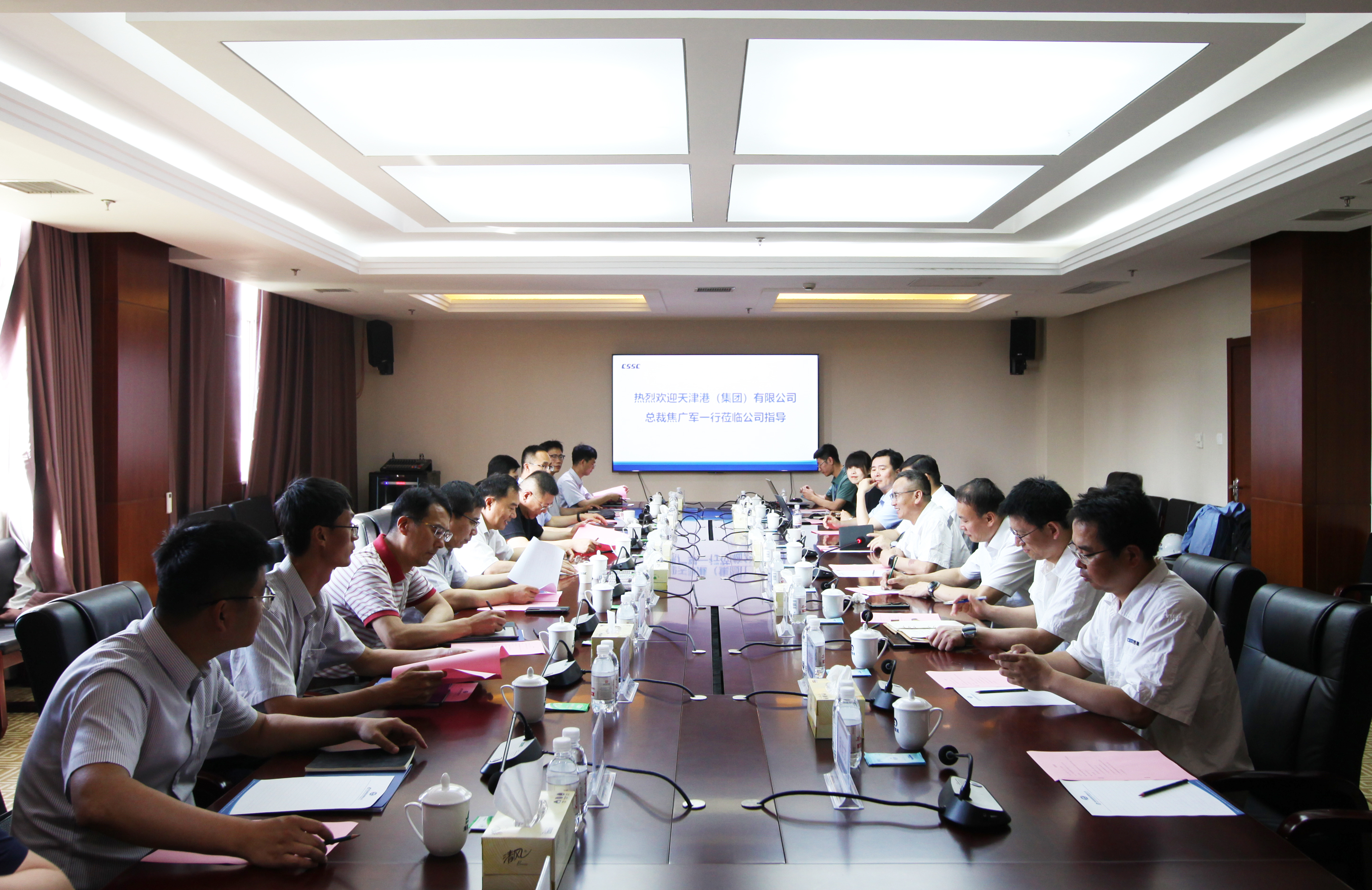 6月17日,天津港(集團(tuán))有限公司黨委副書(shū)記、總裁焦廣軍一行到中國(guó)船舶武漢船機(jī)旗下海西重機(jī)公司考察調(diào)研,武漢船機(jī)黨委副書(shū)記、總經(jīng)理程立兵參加調(diào)研。