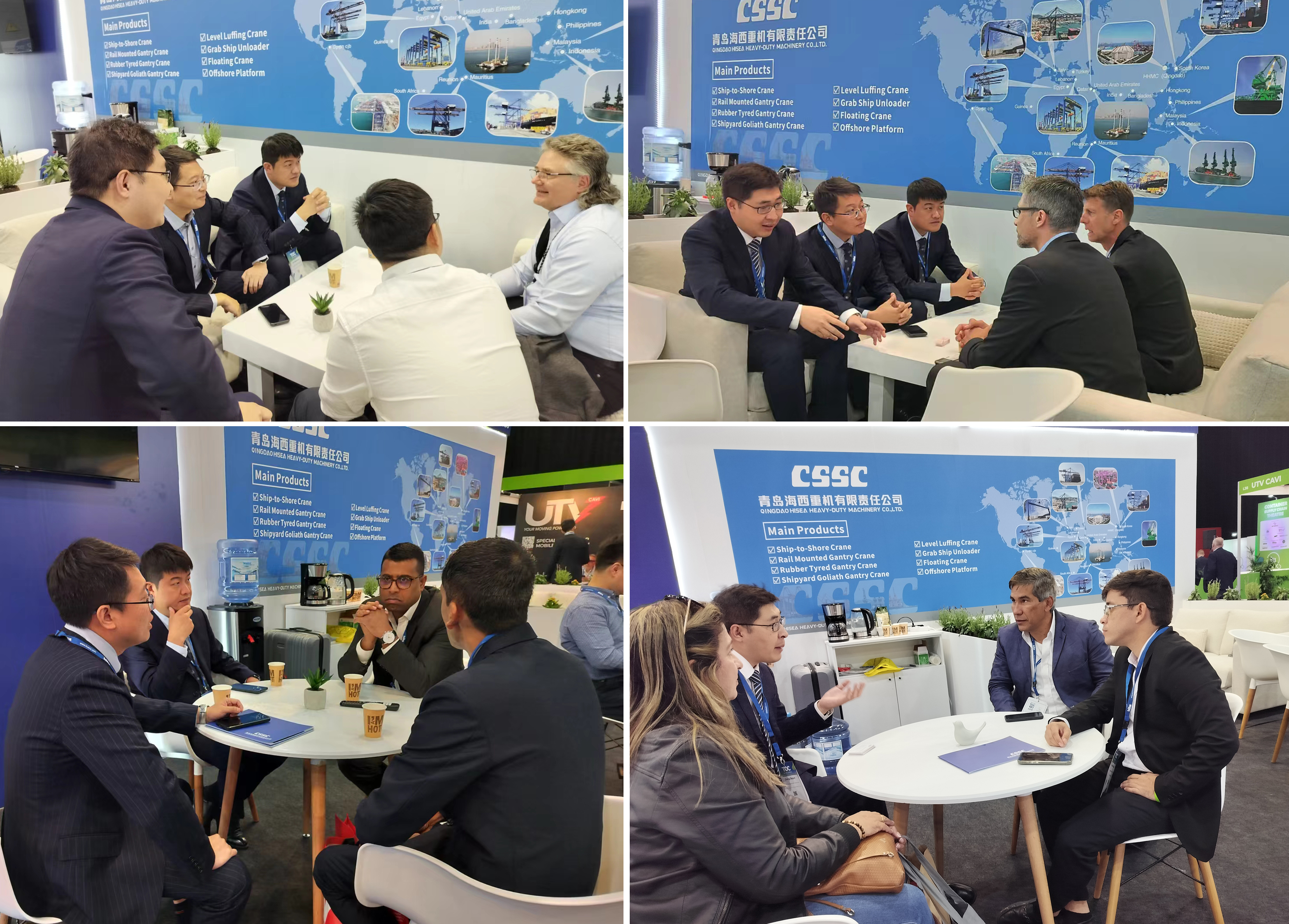 讓市場聽到我們的聲音。展會期間,中國船舶集團旗下武漢船機海西重機公司(HHMC)展臺吸引了各大國際港口運營商代表前來參觀,工作人員向前來參觀人員介紹了海西重機聚焦實現(xiàn)市場“信息化管理”,產品“零缺陷交付”,助力碼頭達成“零碳排放”等方面的創(chuàng)新之舉,得到業(yè)內人士的認可與稱贊。