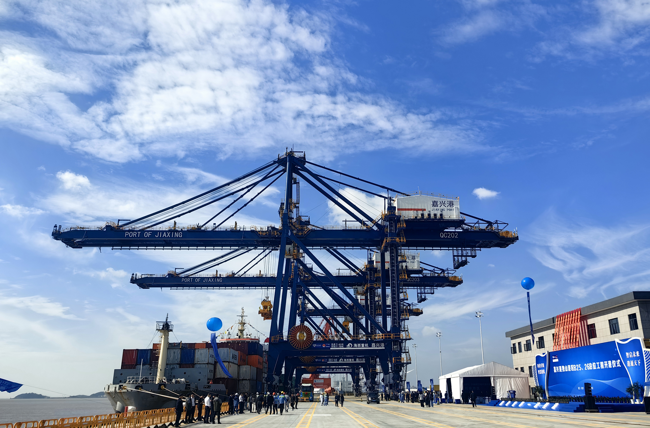 10月29日上午,浙江省海港集團(tuán)、寧波舟山港集團(tuán)嘉興港獨(dú)山港區(qū)B25、26泊位和Ⅱ號(hào)內(nèi)河港池開(kāi)港儀式舉行。這標(biāo)志著嘉興港又一個(gè)萬(wàn)噸級(jí)碼頭和海河聯(lián)運(yùn)作業(yè)區(qū)正式投入使用。海西重機(jī)作為項(xiàng)目參建單位參加儀式。