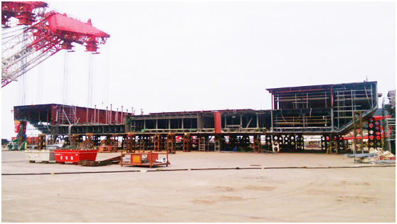 90米平臺船頭船尾的順利貫通是整船建造過程中的一個重要節(jié)點,標志著整船工作重心從結構件分段制作順利過渡到船臺整體搭載,為該平臺如期順利下水奠定了基礎。