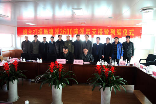 12月30日,由海西重機研制的3600噸大型浮吊交付暨列編儀式在公司碼頭隆重舉行,煙臺打撈局局長杜檸、CCS、公司董事長何紀武等領導出席了會議,標志著3600噸浮吊經過近兩年的制造正式交付并列編交通運輸部煙臺打撈局。