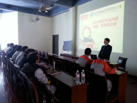 近日,根據(jù)合作計(jì)劃,SEW-傳動(dòng)設(shè)備(天津)有限公司技術(shù)人員來(lái)海西重機(jī)就減速機(jī)的使用和安裝進(jìn)行交流,公司項(xiàng)目部、物資部、品質(zhì)部等部門相關(guān)人員參加了交流會(huì)。